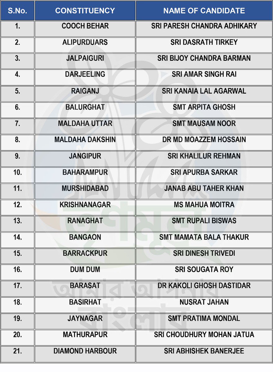 کولکتہ/12مارچ(ایجنسی) لوک سبھا انتخابات 2019 کے لئے تاریخوں کے اعلان کے ساتھ ہی سیاسی جماعتوں نے اپنے امیدواروں کا اعلان شروع کر دیا ہے. اسی کے مدنظر بنگال کی وزیراعلی اور ترنمول کانگریس کی سربراہ ممتا بنرجی نے منگل کو اپنی رہائش گاہ پر ایک میٹنگ کی، اس میٹنگ کے بعد ممتا بنرجی نے ریاست کی 42 سیٹوں پر امیدواروں کا اعلان کردیا، اسکے ساتھ ہی ممتا نے کہا کہ اس بار ٹی ایم سی نے 40.5 فیصد خواتین امیدواروں